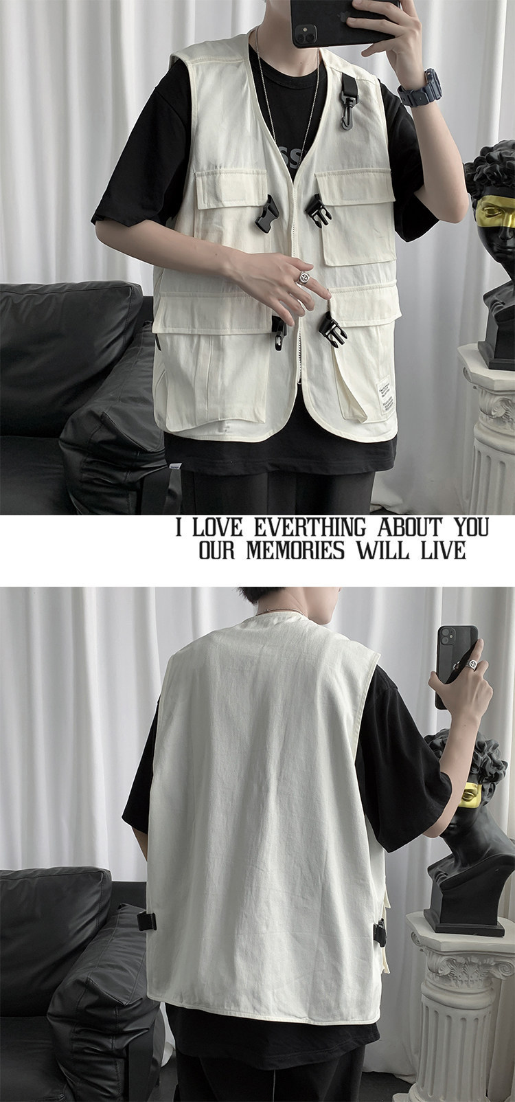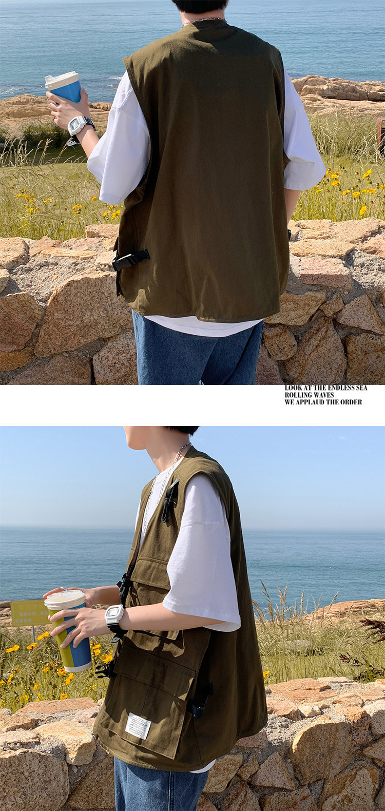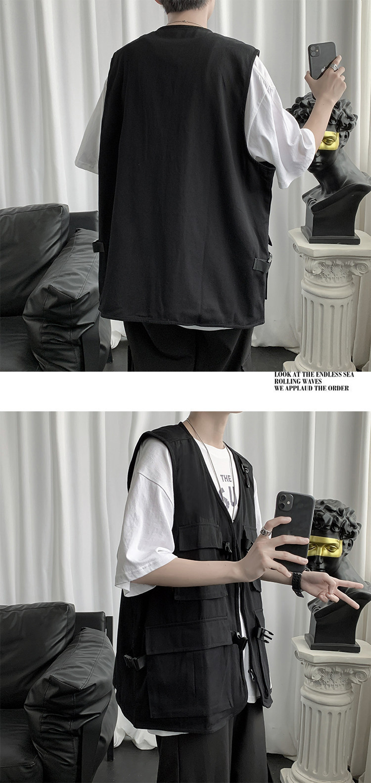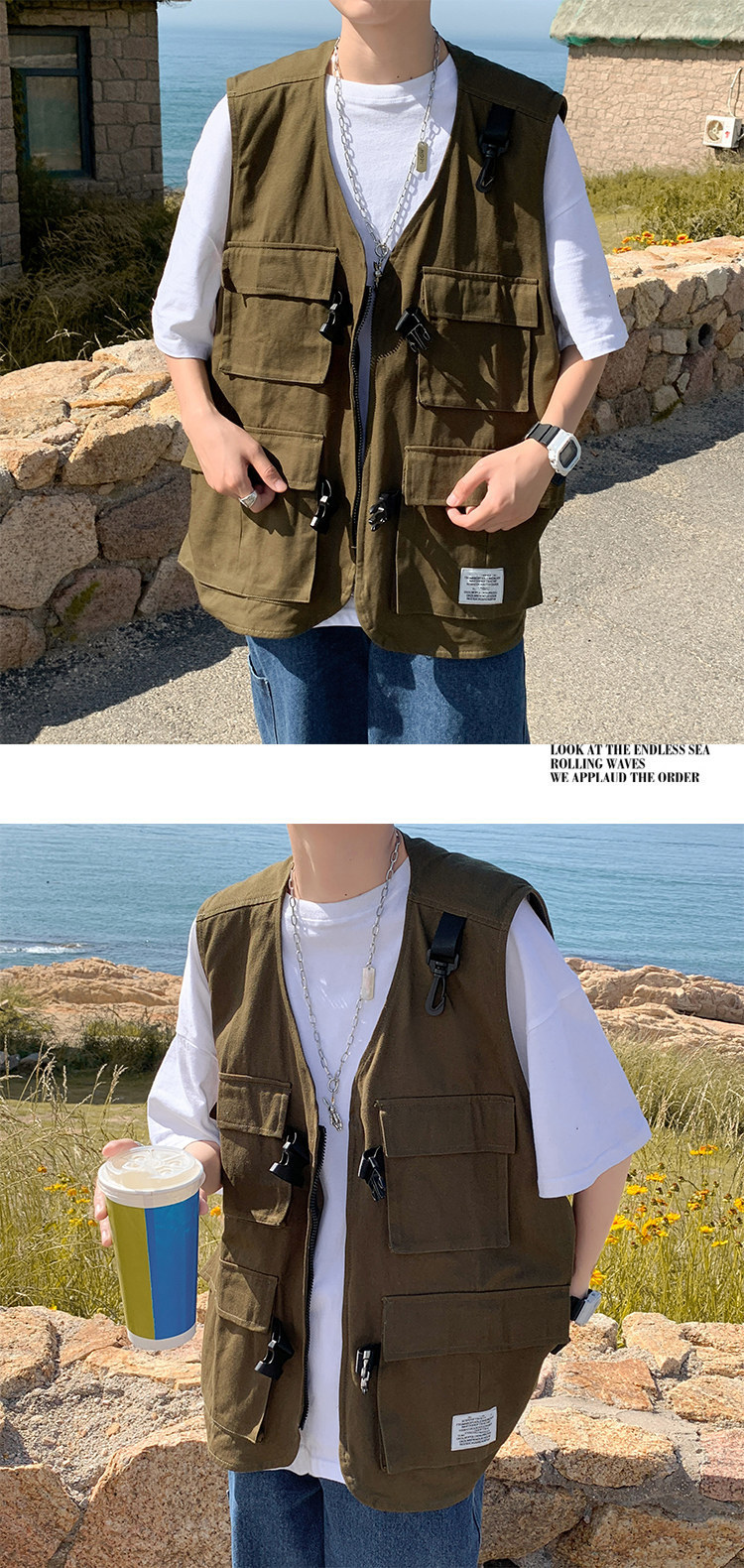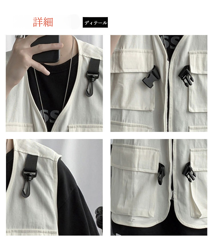 機能的な風の男性の秋のトップス 薄手のゆったりノースリーブベスト ワークウェア・キャンバス