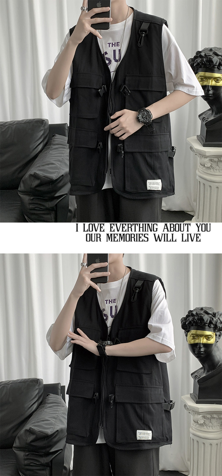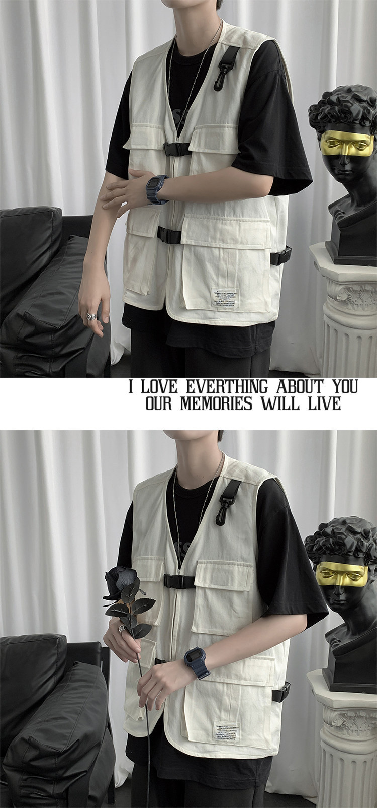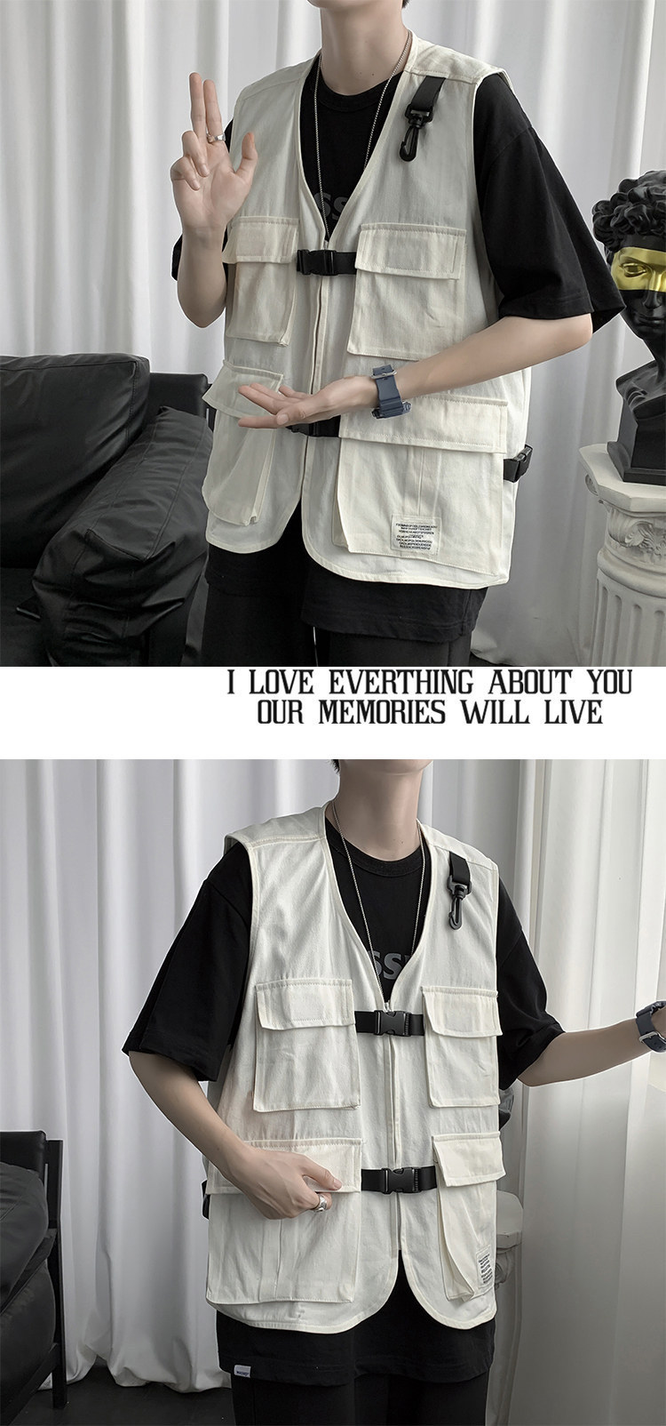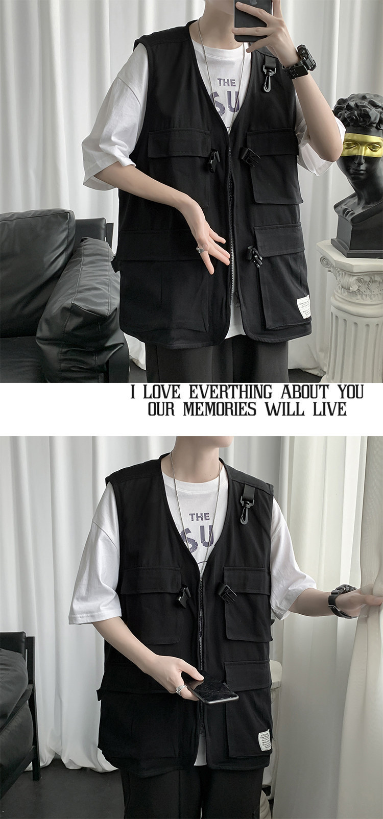 機能的な風の男性の秋のトップス 薄手のゆったりノースリーブベスト ワークウェア・キャンバス