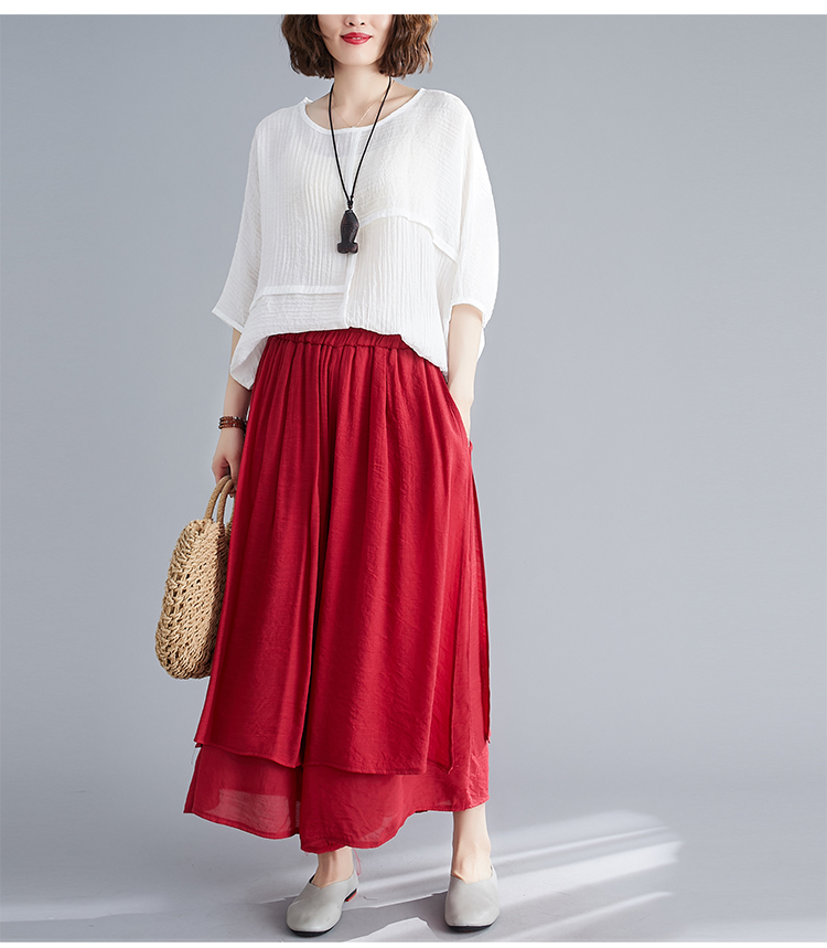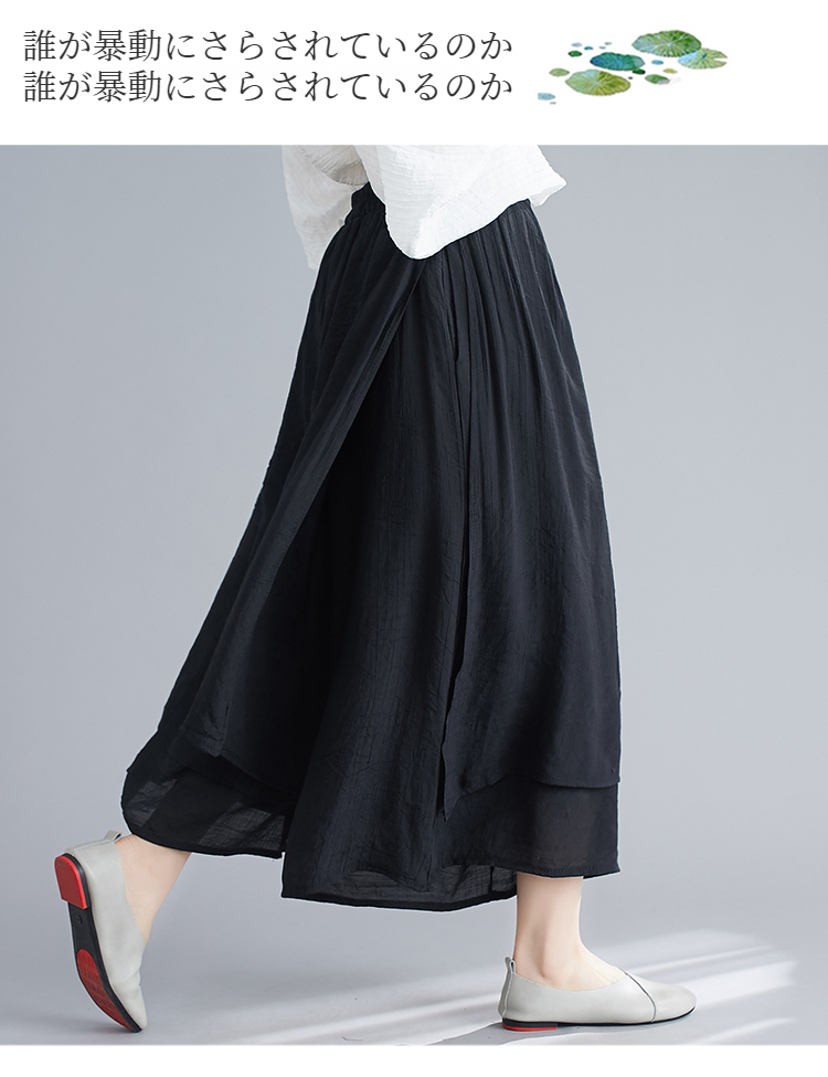 文学的な夏のレディース綿麻ワイドパンツ全体画像